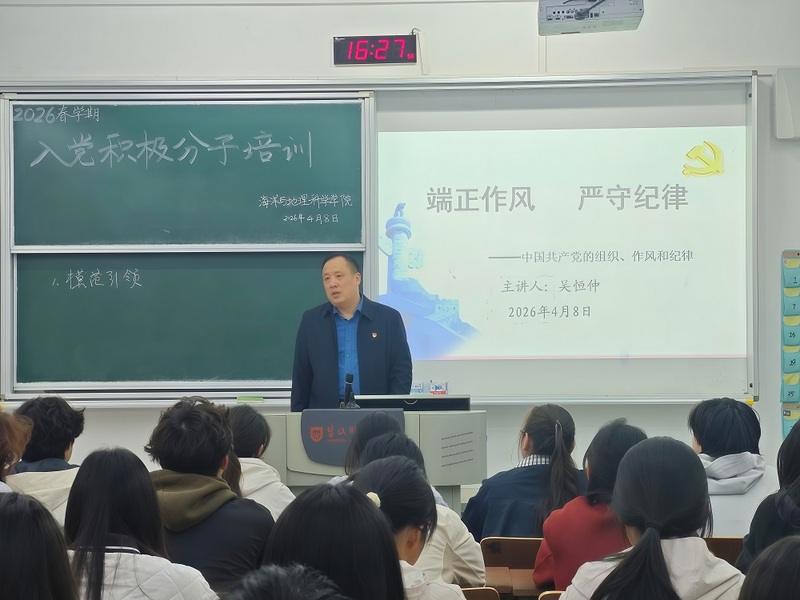 为确保发展党员的质量,帮助积极分子系统学习党的理论与知识,端正入党动机,坚定理想信念,提升政治素养,4月8日下午,我院举行“端正作风,严守纪律”主题党课。本次党课由学院党委副书记吴恒仲讲授。